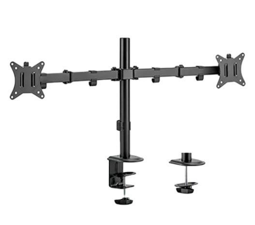 Optimiza tu espacio de trabajo con el Brazo Soporte Ergonómico para 2 Monitores compatible con pantallas de 17” a 32” bajo estándar VESA. Fabricado con materiales de alta resistencia, garantiza estabilidad y seguridad para tus dispositivos. Su diseño fijo asegura una posición estable, reduciendo vibraciones y mejorando la ergonomía visual. Incorpora un práctico sistema clip para gestión de cables, manteniendo tu escritorio ordenado y libre de enredos. Soporta monitores de hasta 8 kg cada uno, permitiendo ajustar la inclinación y orientación para mayor comodidad. Ideal para oficinas, gamers y diseñadores que buscan productividad y confort. Compatible con VESA 75x75 mm y 100x100 mm, ofreciendo fácil instalación y ajuste. Mejora tu postura y aprovecha al máximo tu área de trabajo con este soporte doble ergonómico.